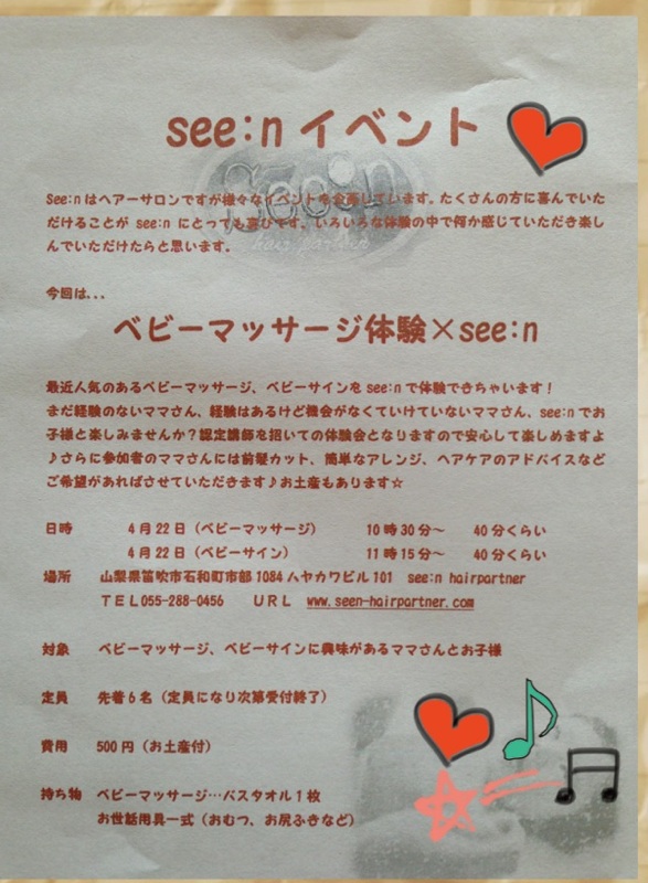 ベビーマッサージ×see:nです!